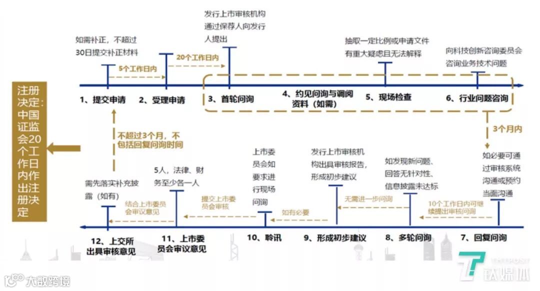 根据制度安排,科创板的发行上市审核要经过受理、审核问询、上市委审议、证监会注册、发行上市等五个环节。