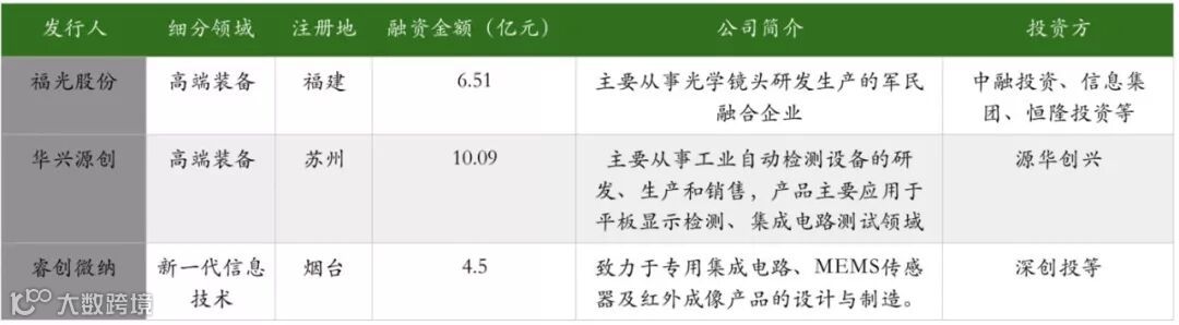 从行业领域来看,睿创微纳属于新一代信息技术,福光股份和华兴源创均属于高端装备领域。