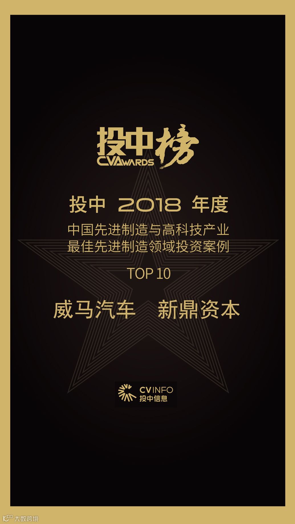 2019年4月17-19日,由投中网,投中信息主办的“第13届中国投资年会·年度峰会”在上海举行,“投中2018年度榜”也在会议期间隆重揭晓。新鼎资本已投企业威马汽车获得投中2018年度中国先进制造与高科技产业最佳先进制造领域投资案例,已投企业云从科技获得投中2018年度人工智能与大数据产业最佳投资案例。
