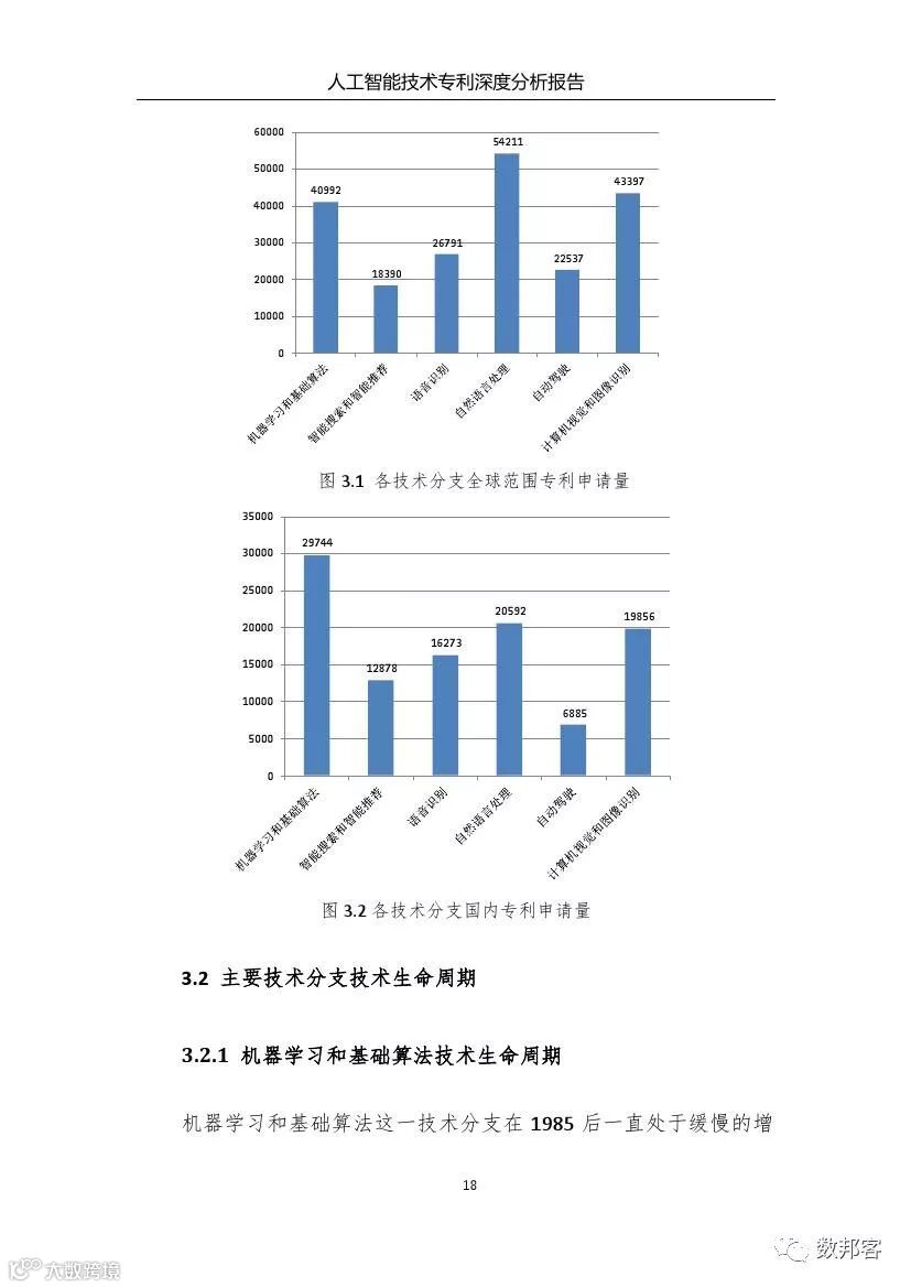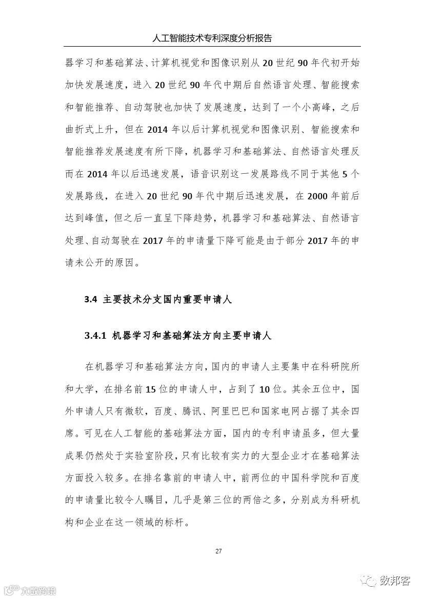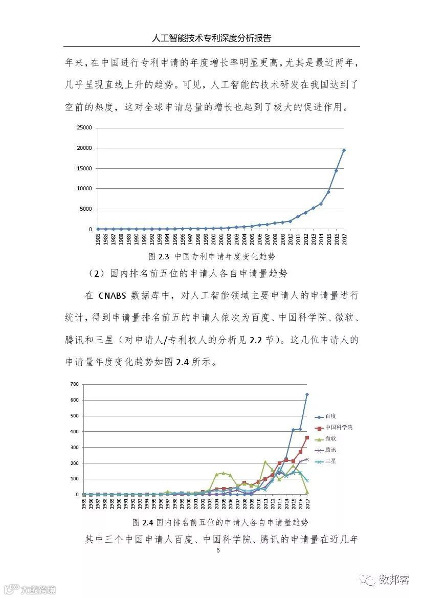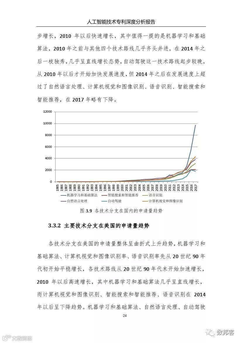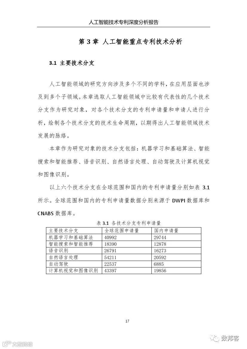 对于人工智能领域主要技术分支、重要专利权人和技术竞争态势等方面的详细的分析请参阅《报告》完整版。