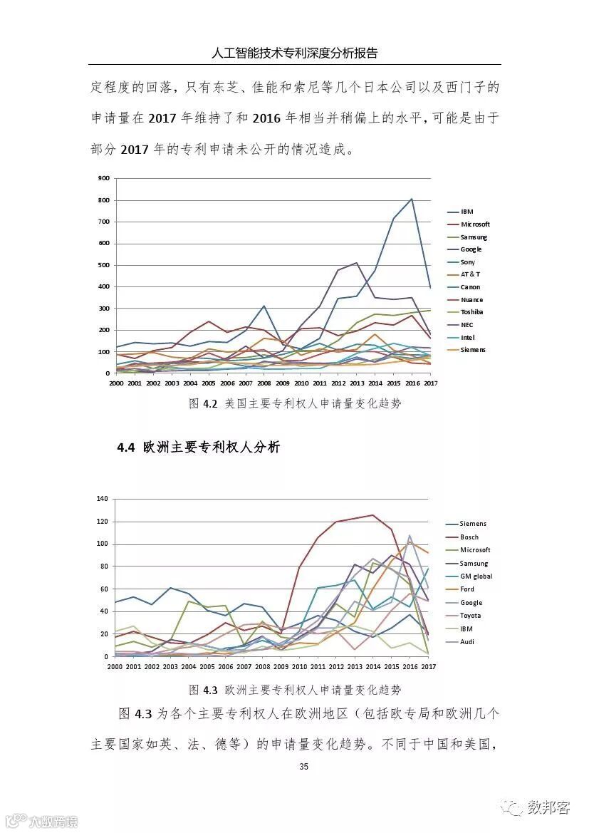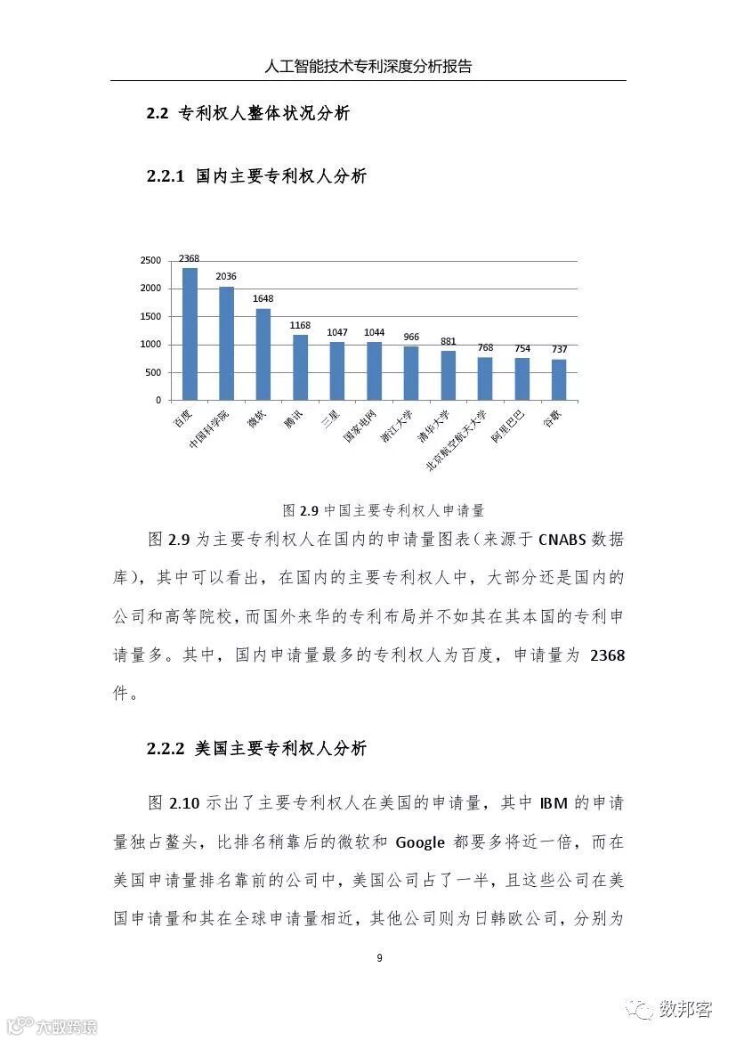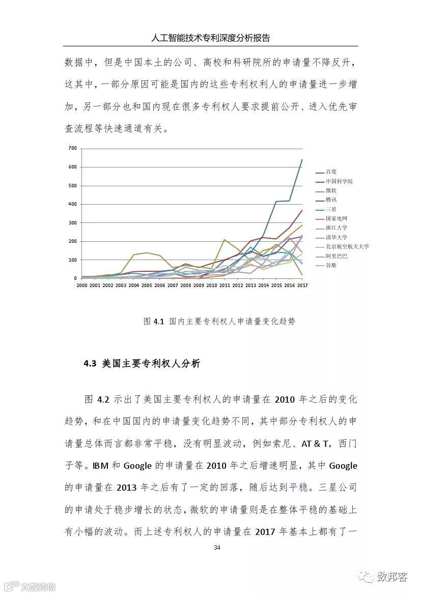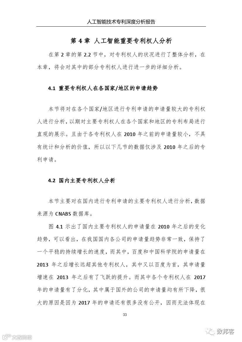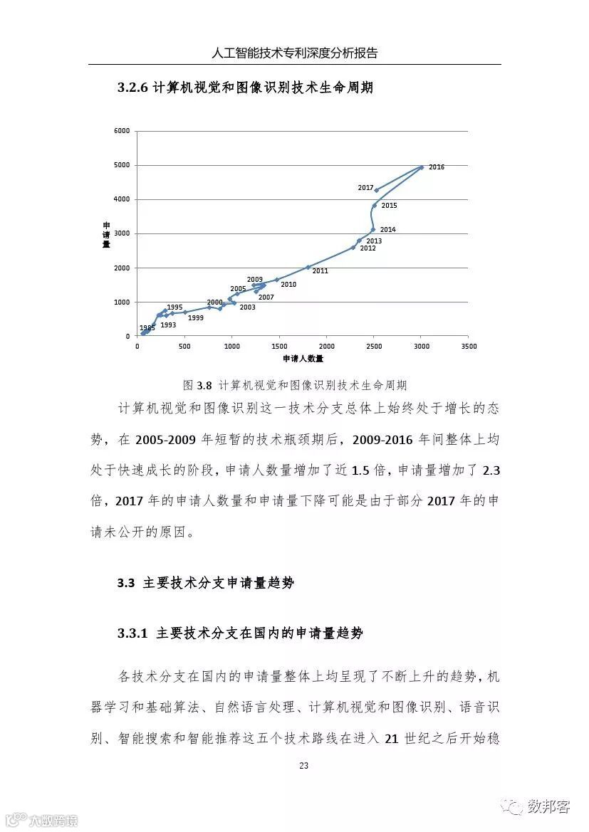 对于人工智能领域主要技术分支、重要专利权人和技术竞争态势等方面的详细的分析请参阅《报告》完整版。