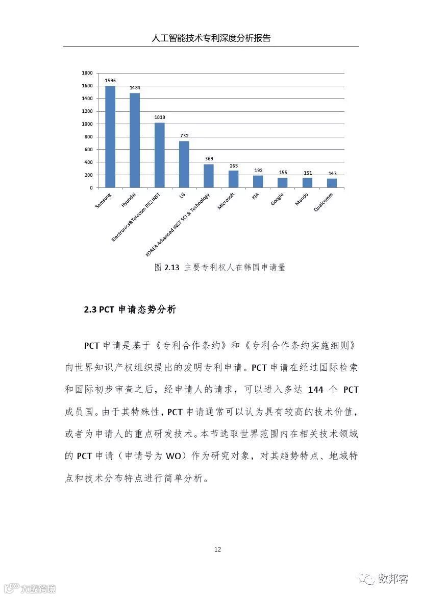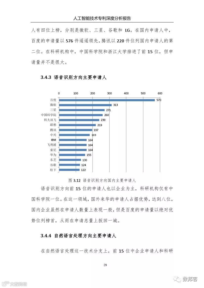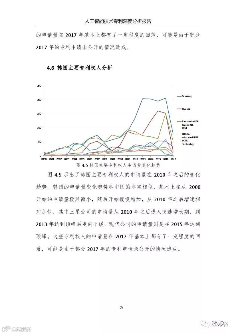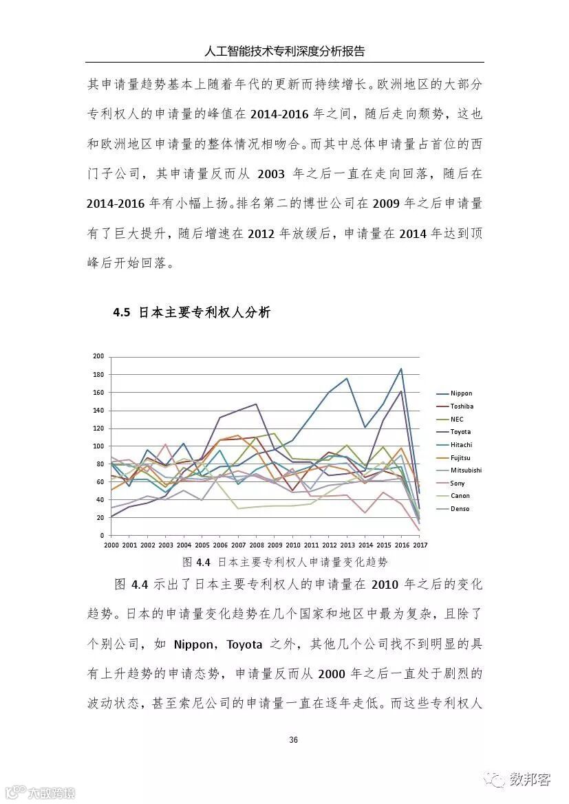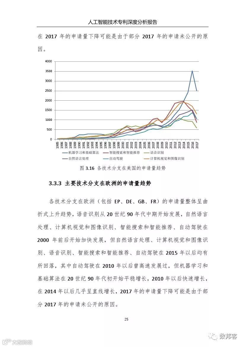 对于人工智能领域主要技术分支、重要专利权人和技术竞争态势等方面的详细的分析请参阅《报告》完整版。