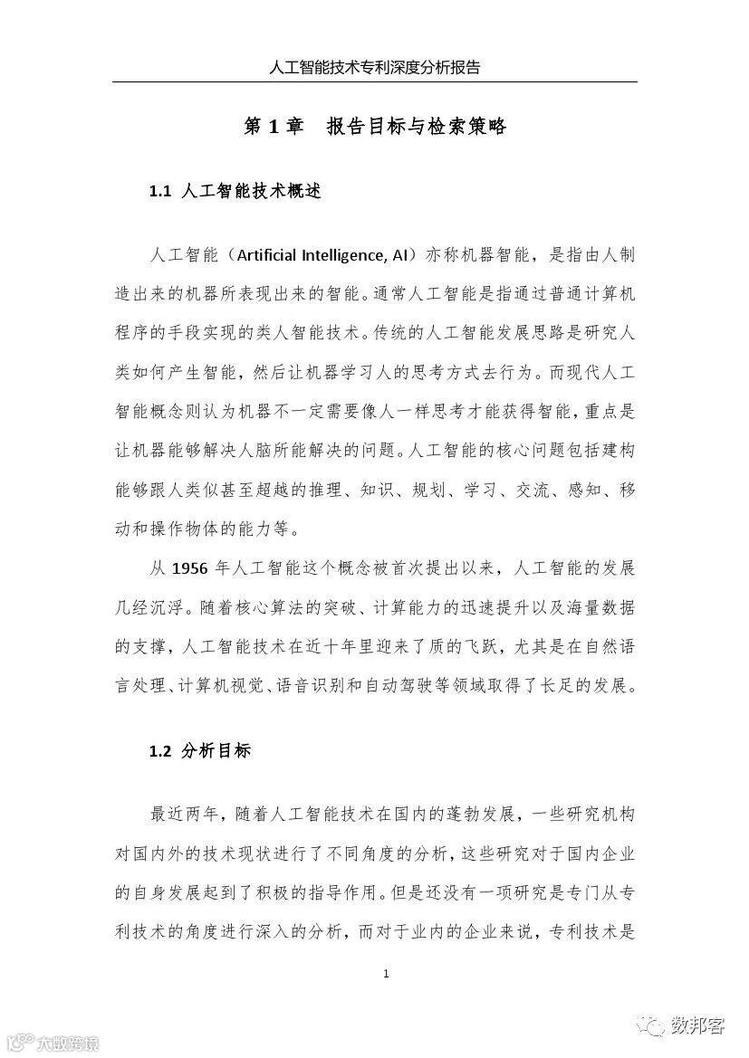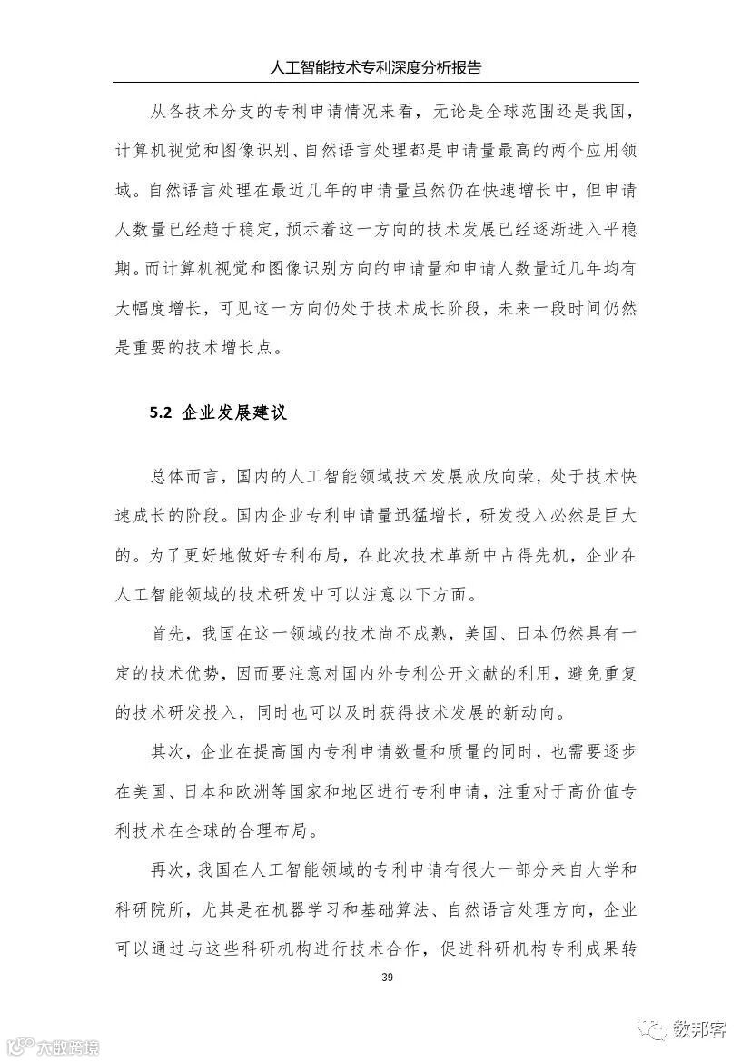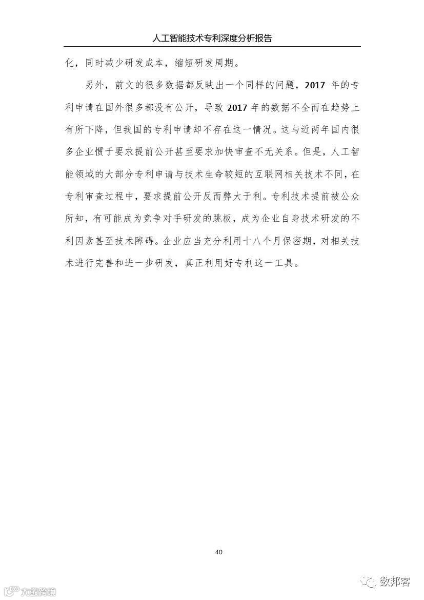 本报告从专利数据入手对人工智能技术进行了深度分析,有益地弥补了已有报告未从专利数据深入分析的遗憾。