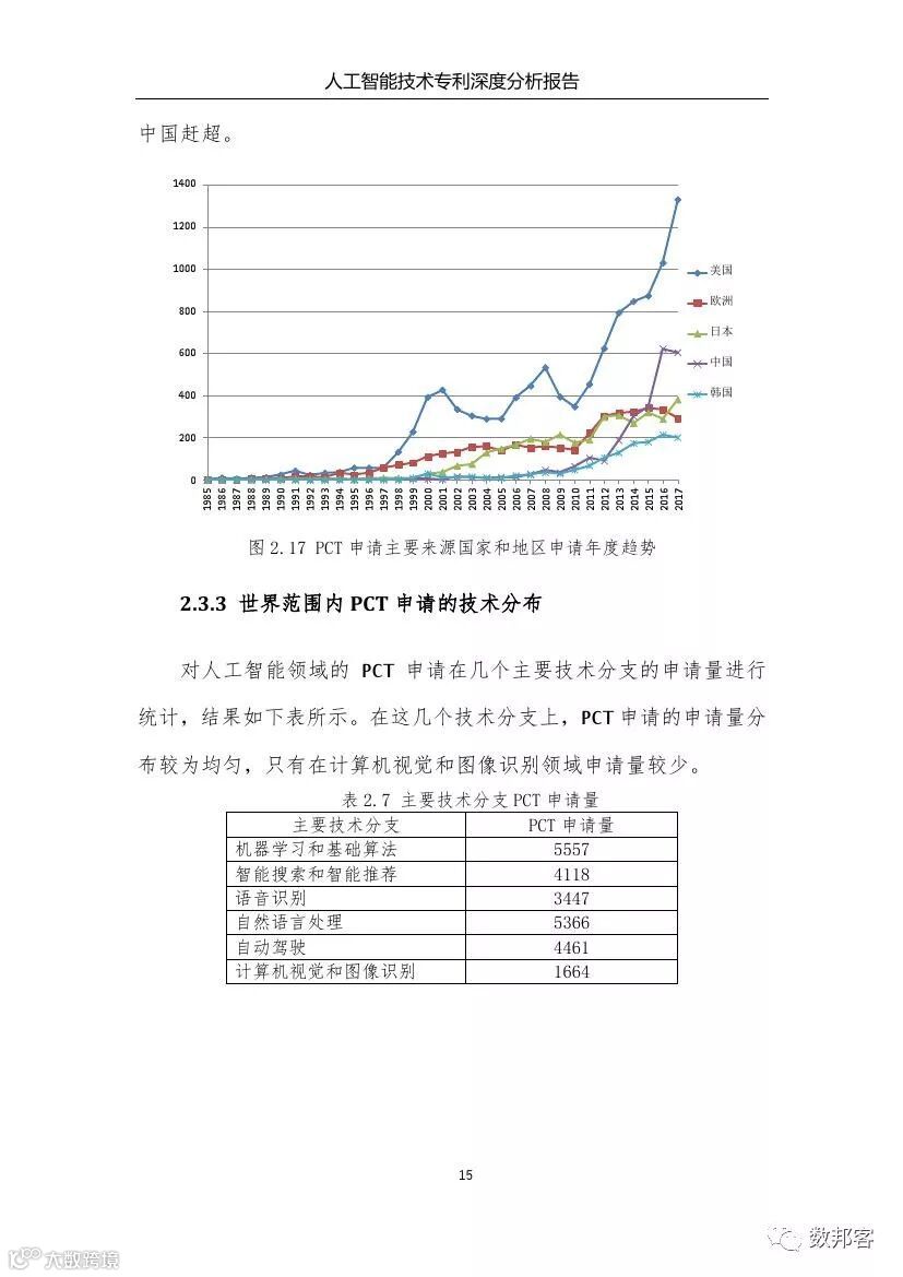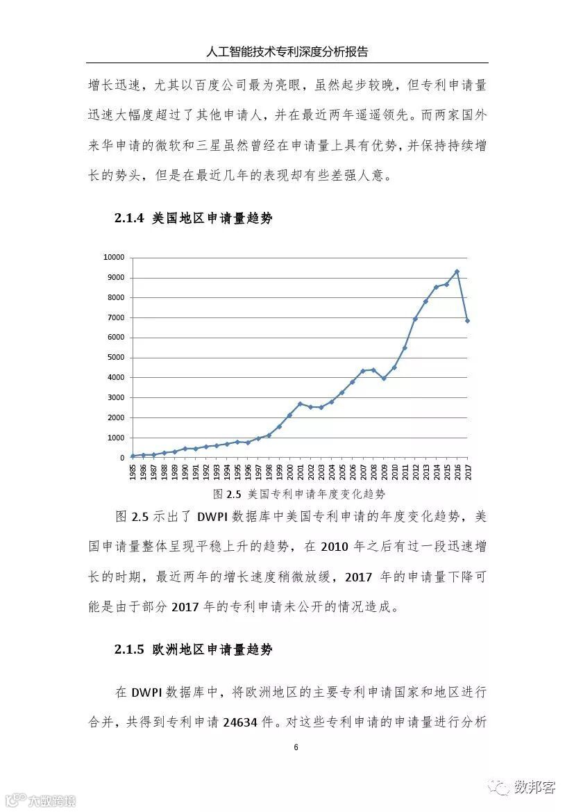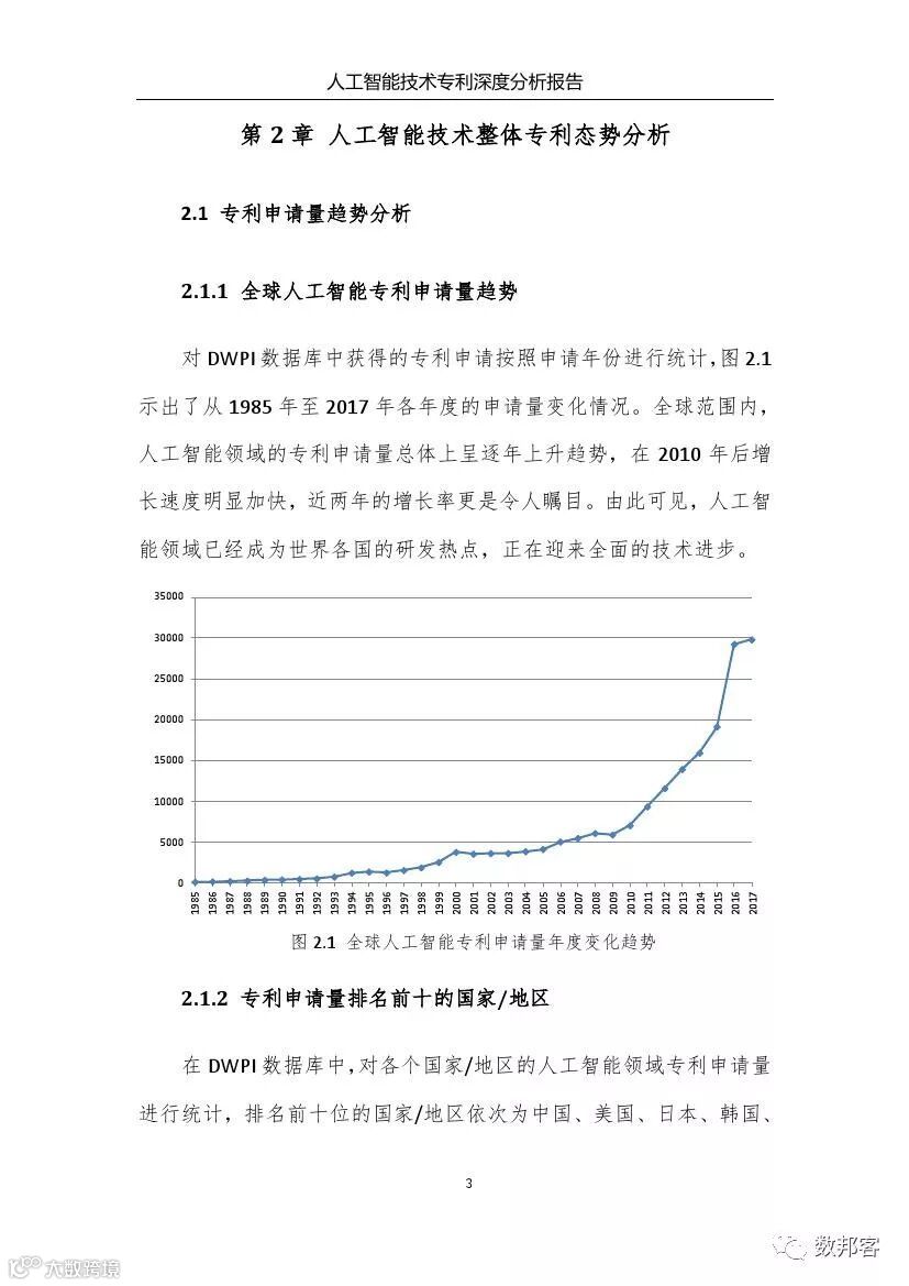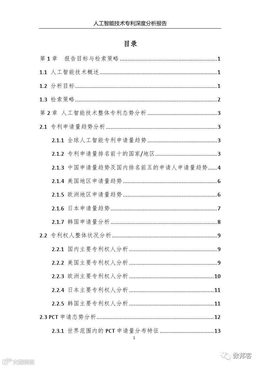 本报告从专利数据入手对人工智能技术进行了深度分析,有益地弥补了已有报告未从专利数据深入分析的遗憾。