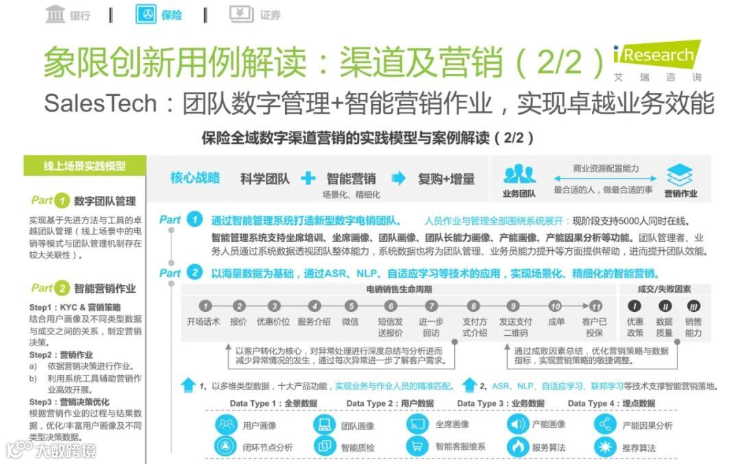 《中国FinTech行业发展洞察》报告显示,2020年,银行、保险与证券机构的累计技术资金投入达2691.9亿元。其中,中国保险机构技术投入达351亿元,中国保险机构技术采购费用达183亿元。艾瑞指出,保险领域在渠道与营销(SalesTech推动下)、数据中台、全域数字化等用例的效能表现较优。过去几年,暖哇科技以数据科技为基础,在完成自身健康险全栈式解决方案能力建设的同时,不断推动保险行业数字化转型的历程,可以说是报告中这一论述的较好实践。