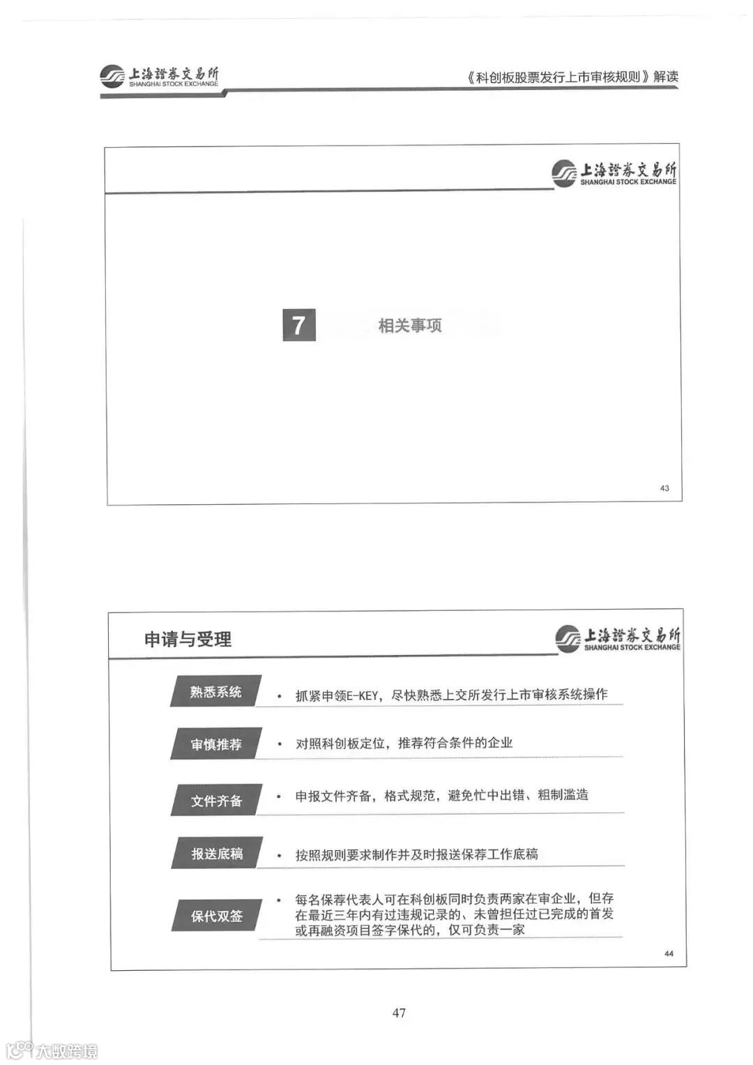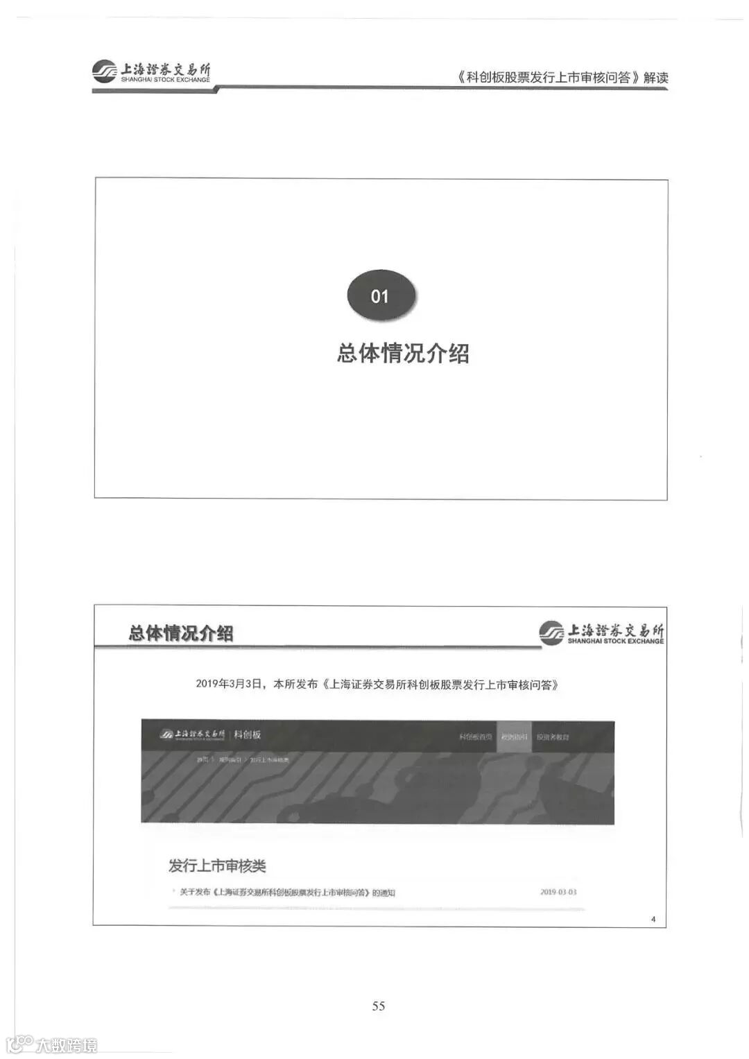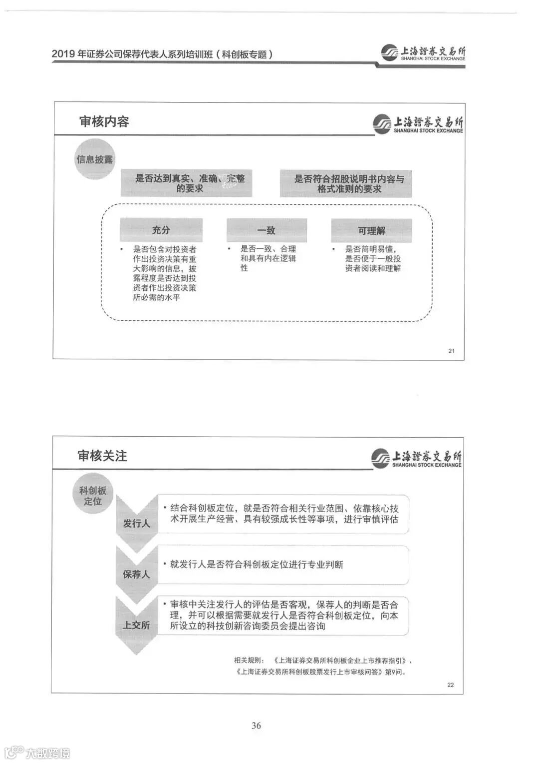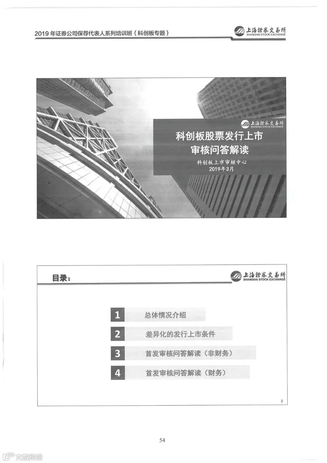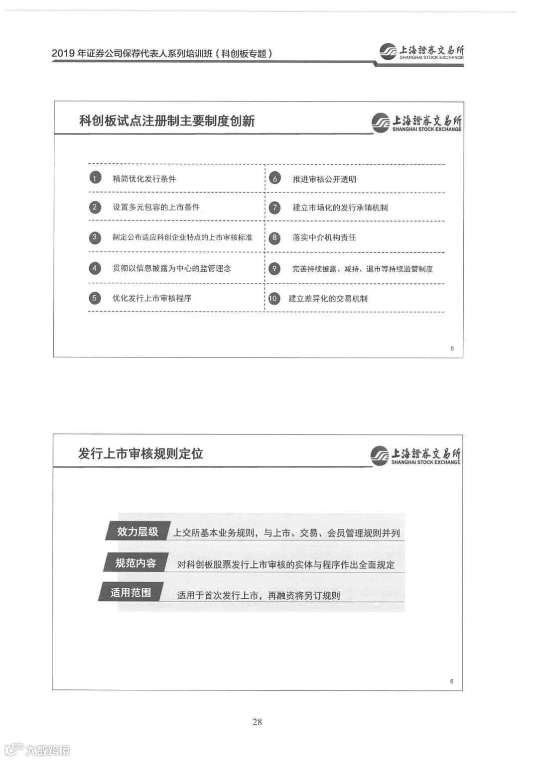 当日的培训内容公分为五部分,分别包括,设立科创板并试点注册制实施意见概述、科创板首次公开发行注册管理办法和信息披露规则讲解、科创板定位与上市标准、科创板审核规则解读、科创板审核问答解读、上交所多位负责人到场对科创板申报流程、审核关注点等市场关注的内容进行了详细讲解。