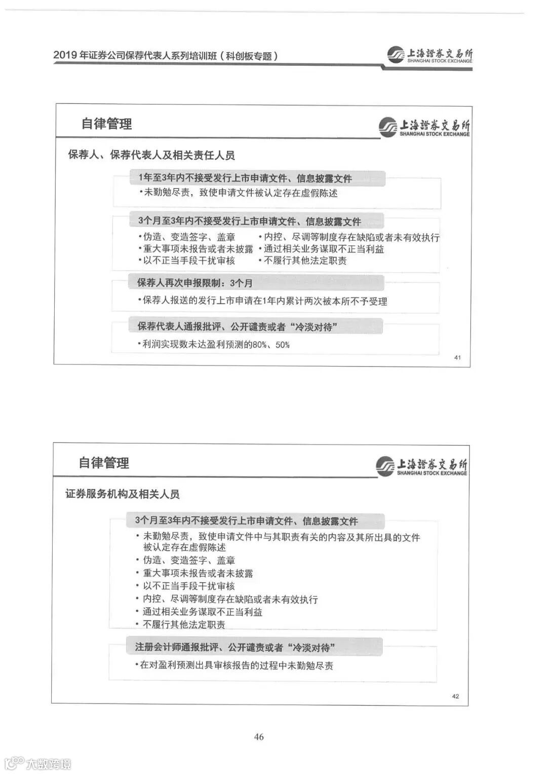 根据培训会上透露出的重要精神,在科创板的发行和审核中,不仅强调券商等中介机构的责任重大,更要求发行人、保荐人、证券服务机构等各方施行“自律管理”,并对发行各方出现相关违规情况皆有较详细的处理意见。