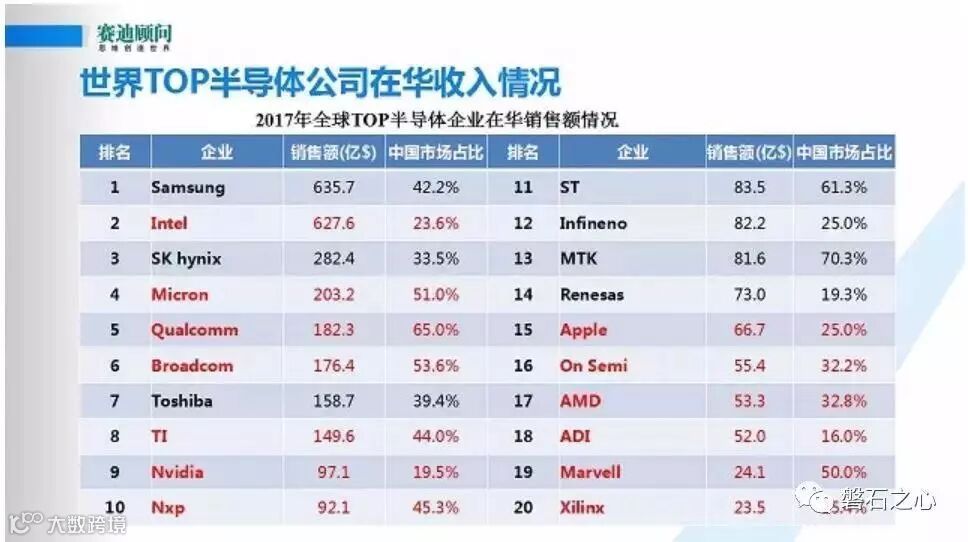 目前,中国在芯片设计、研发、制造上全面落后。在CPU、GPU、存储器这些通用核心芯片市场上,更是被欧美、日韩企业彻底垄断,比如销量最高的存储器市场就被韩国三星、海士力和美光垄断。