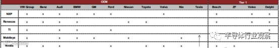 自动驾驶芯片市场仍处于初期起步阶段。 虽然 NXP 等传统半导体厂商深耕于汽车电子多年,获得了一定的客户粘性,但在自动驾驶业务上,整个市场还未形成非常明显的竞争格局。客户也在不断测试芯片厂商的产品,来实现最优选择。根据各公司披露的数据,目前各大芯片厂商与整车厂(OEM)及 Tier 1 厂商都开展了紧密的合作,但客户数量不相上下。
