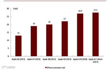历代 Apple 手机芯片成本趋势