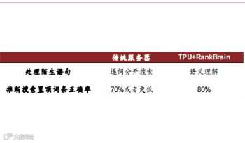 先前,在没有深度学习情况下,单纯依靠 PageRanking 及 InvertedIndex, Google 也能实现一定程度的对搜索词条排序的优化,但准确率不够。 TPU 利用 RankBrain 中的深度学习模型,在 80%的情况下计算出的置顶词条,均是人们最想要的结果。