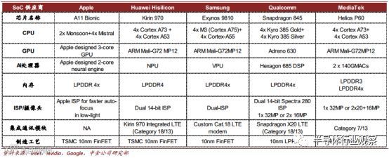 用于智能手机的边缘推断芯片:竞争格局稳定,传统厂商持续受益