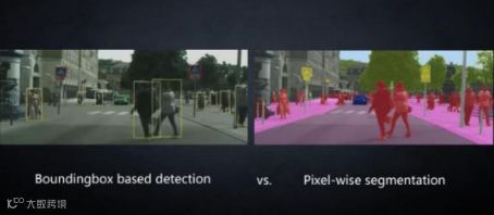 但这并不能满足需求:车辆必须要辨别目标到底是其他车辆,是标志物,是信号灯,还是人等等,因为不同目标的行为方式各异,其位置、状态变化,会影响到车辆最终的决策,因而我们要对图像进行语义分割(segmantation,自动驾驶的核心算法技术)。语义分割的快慢和推断芯片计算能力直接相关,时延大的芯片很显然存在安全隐患,不符合自动驾驶的要求。