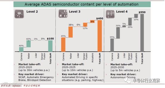 英飞凌对各自动驾驶等级中半导体价值的预测