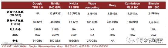 ► 云计算服务商自研加速芯片(如 Google 的 TPU) 这两种方案。各芯片厂商基于不同方案,都推出了针对于云端训练的 AI 芯片。