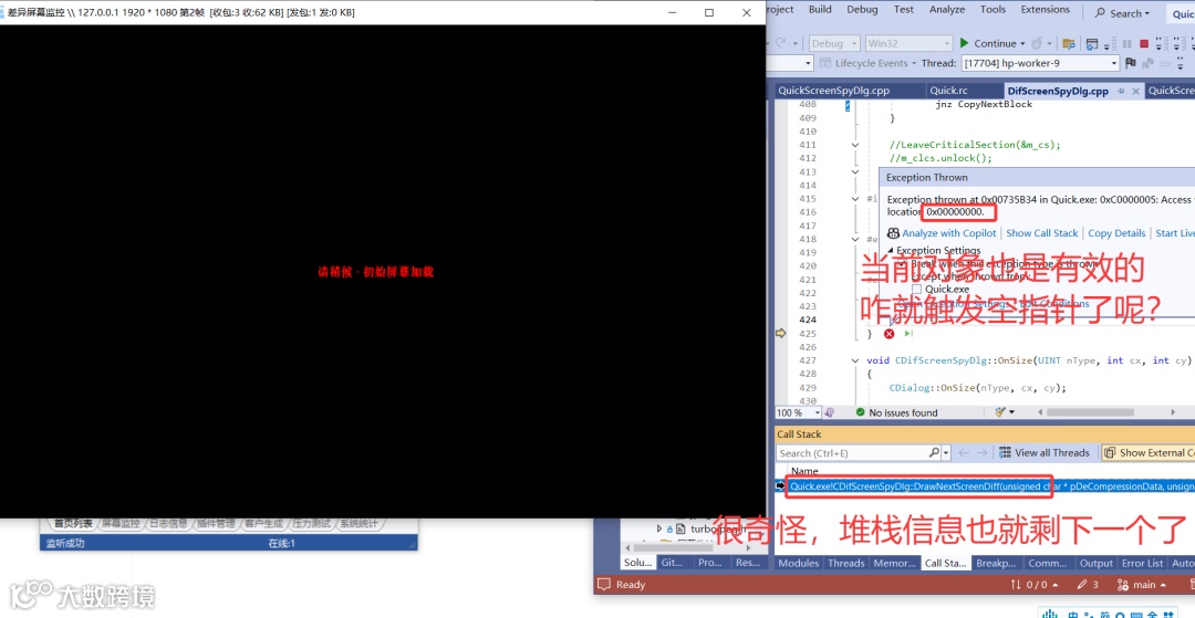 我的银狐代码每次打开差异屏幕功能时会就会崩溃,崩溃截图如下: