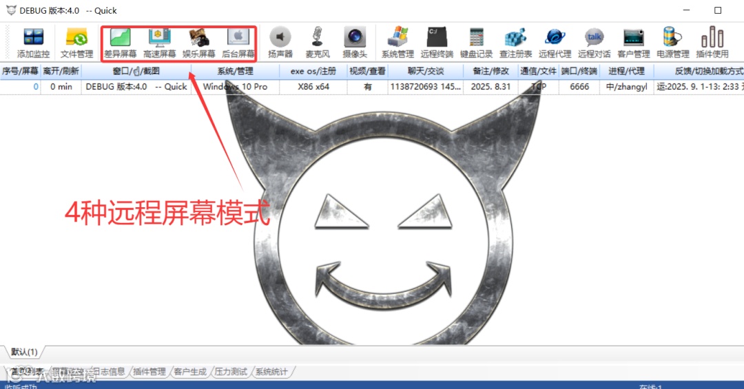 银狐远程控制软件一共提供了4种远程屏幕模式,分别是差异屏幕、高速屏幕、娱乐屏幕和后台屏幕,如下图所示: