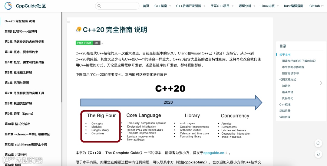各位小伙伴,《C++20完全指南》已经在cppguide.cn上发布了。