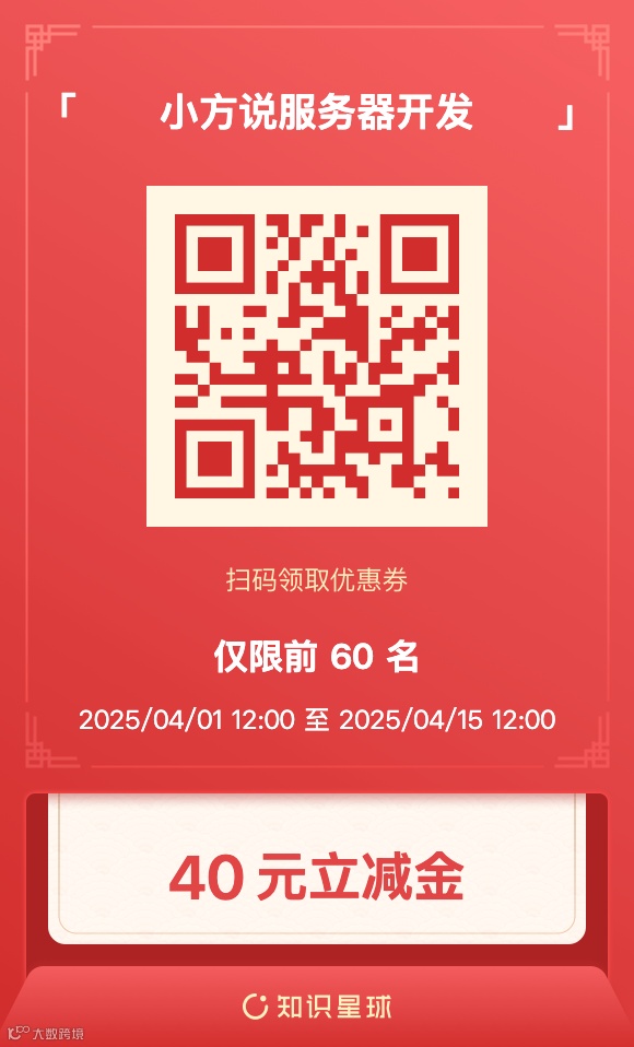值此金三银四之际,星球原价 325/年,扫码加入立即优惠 40 元: