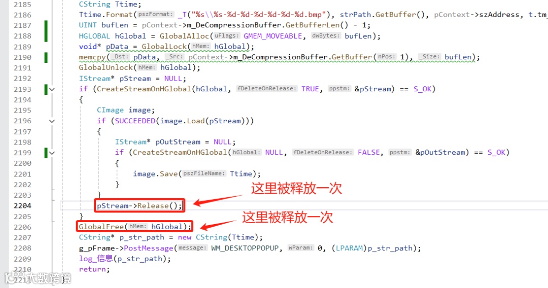 因此只要将上述代码中两处调用CreateStreamOnHGlobal函数的地方改成 FALSE 就可以了,不要自动释放内存即可。