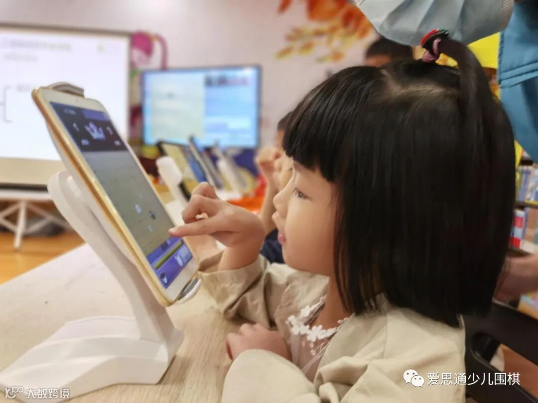 然后在阳光帅气的超人老师引导下理解围棋的基本规则“地多为胜、气尽棋亡”,开始尝试用爱思通APP进行探索学习。孩子们积极和超人老师互动,甚至上台和AI对弈,玩得可开心了!
