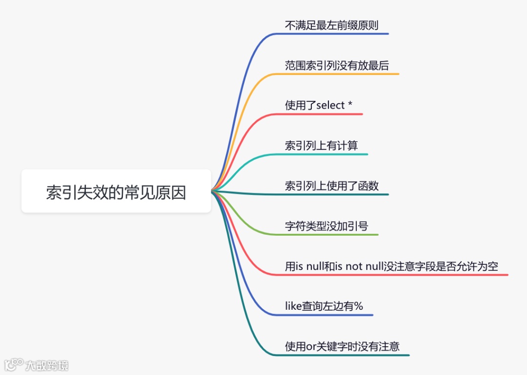 下面说说索引失效的常见原因: