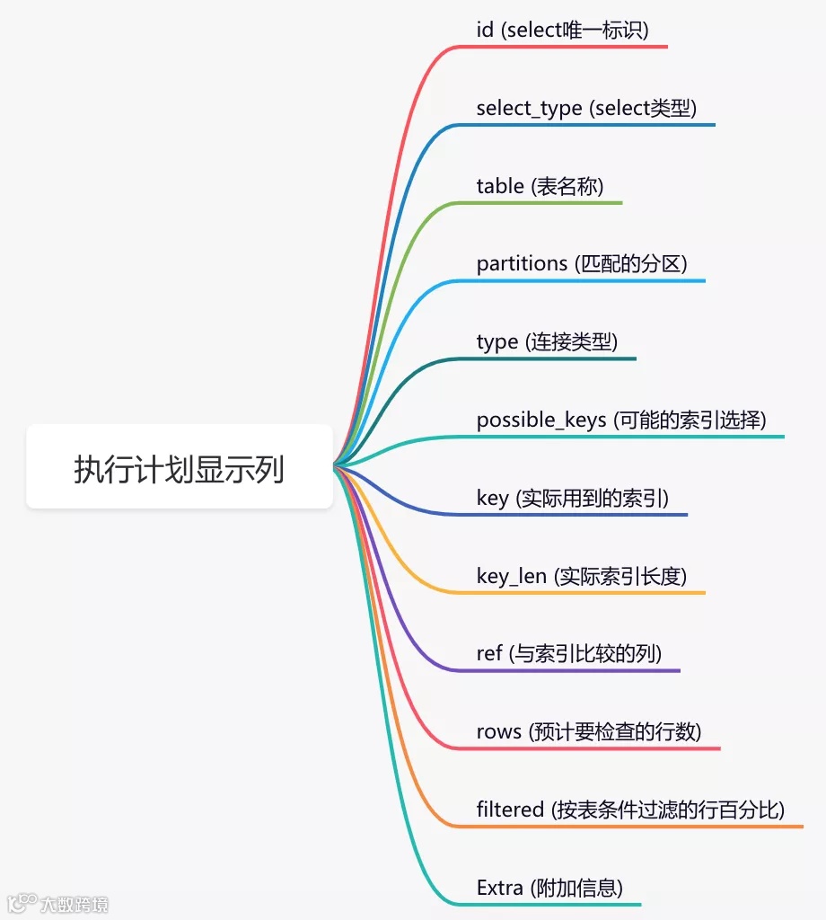 通过这几列可以判断索引使用情况,执行计划包含列的含义如下图所示: