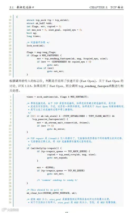 hello,大家好,小方今天给大家分享一个经典的 TCP 源码分析PDF,基于比较新的内核版本-Linux 4.4.0,从用户态 TCP 编程,到 TCP RFC 议,TCP收发路径,TCP三次握手和四次挥手,TCP 拥塞控制等方方面面的 Linux 实现进行分析注释,从中我们可以学习到内核是怎么实现 TCP 协议的,从而对 TCP 协议原理有更深刻的理解,才能更快地解决真正的问题,源码面前,了无秘密。