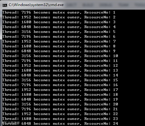 | Mutex (互斥体) | 等待持有 Mutex 的线程释放该 Mutex,等待成功,拥有该Mutex | HANDLE |