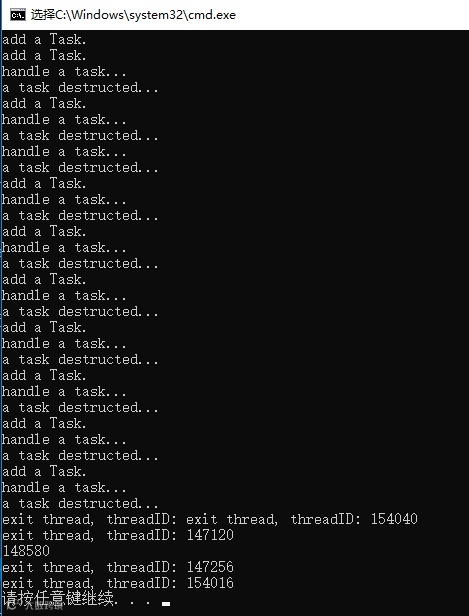 std::cout << "exit thread, threadID: " << std::this_thread::get_id() << std::endl;
