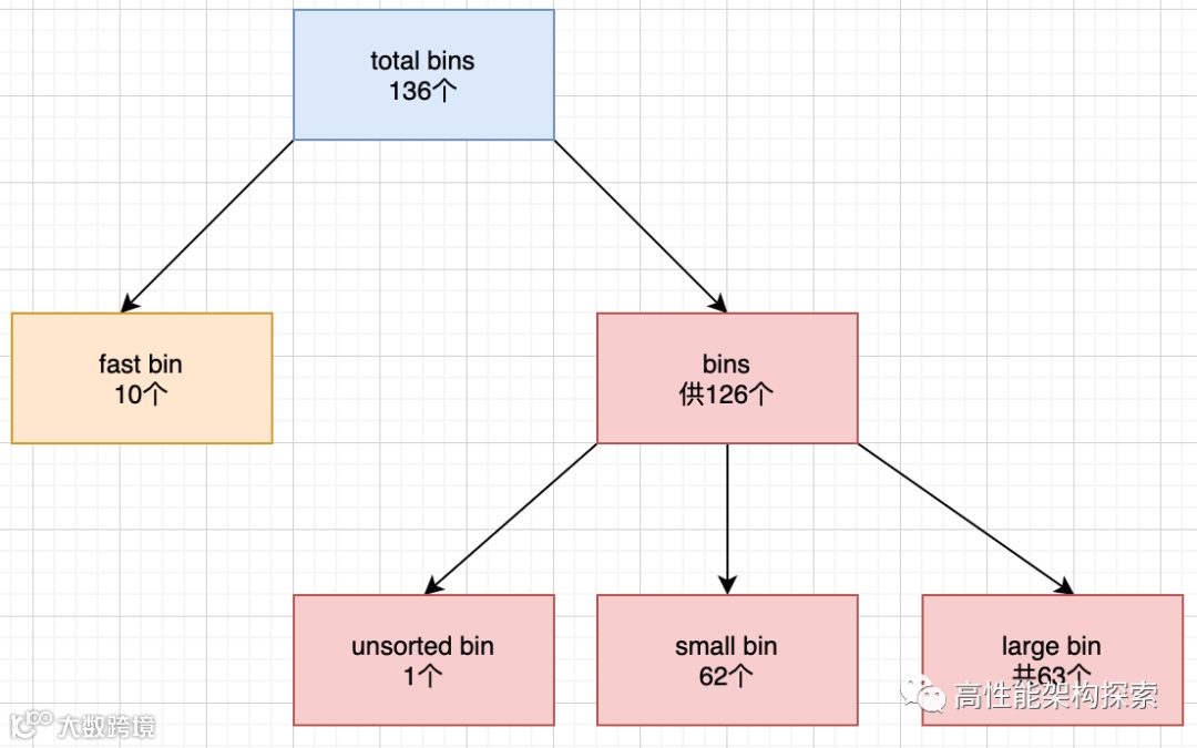 在glibc中,上述4中bin的个数都不等,如下图所示: