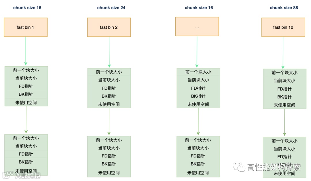 下面是fastbin结构图: