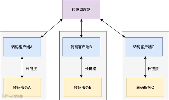 将转码角色分为三部分:调度器 ,客户端,转码服务 ,转码服务是 worker ,负责执行任务即可,调度器会将不同的任务分配到不同的服务器上,客户端会上报每个转码服务的状态,当转码服务出现问题时,调度器可以通过客户端重启/关闭/暂停转码服务,在调度任务的过程中,需要保证任务消息不丢失。