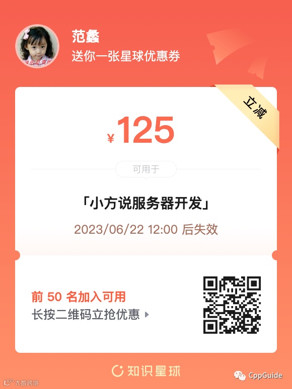 如果你阅读完本文仍有疑问或者你在求职 C++ 岗位过程中有困惑,可以加入知识星球继续提问。扫描下面的二维码,原价325可以立即优惠125元。