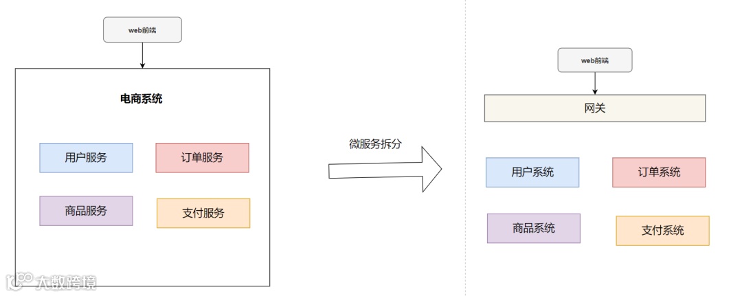 所谓的微服务拆分,其实就是把一个单体的应用,按功能单一性,拆分为多个服务模块。比如一个电商系统,拆分为用户系统、订单系统、商品系统等等。