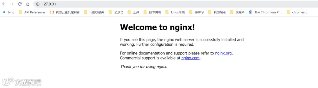 我们在浏览器中,输入 http://127.0.0.1,端口号默认是 80,就会看到 Nginx 默认页面。