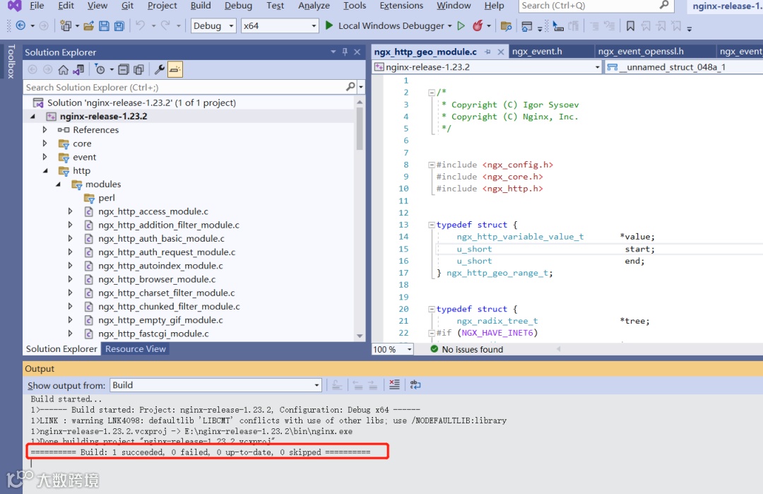得到一份可以在 Visual Studio 中调试的 Nginx 版本,为后续继续学习 Nginx 做铺垫。