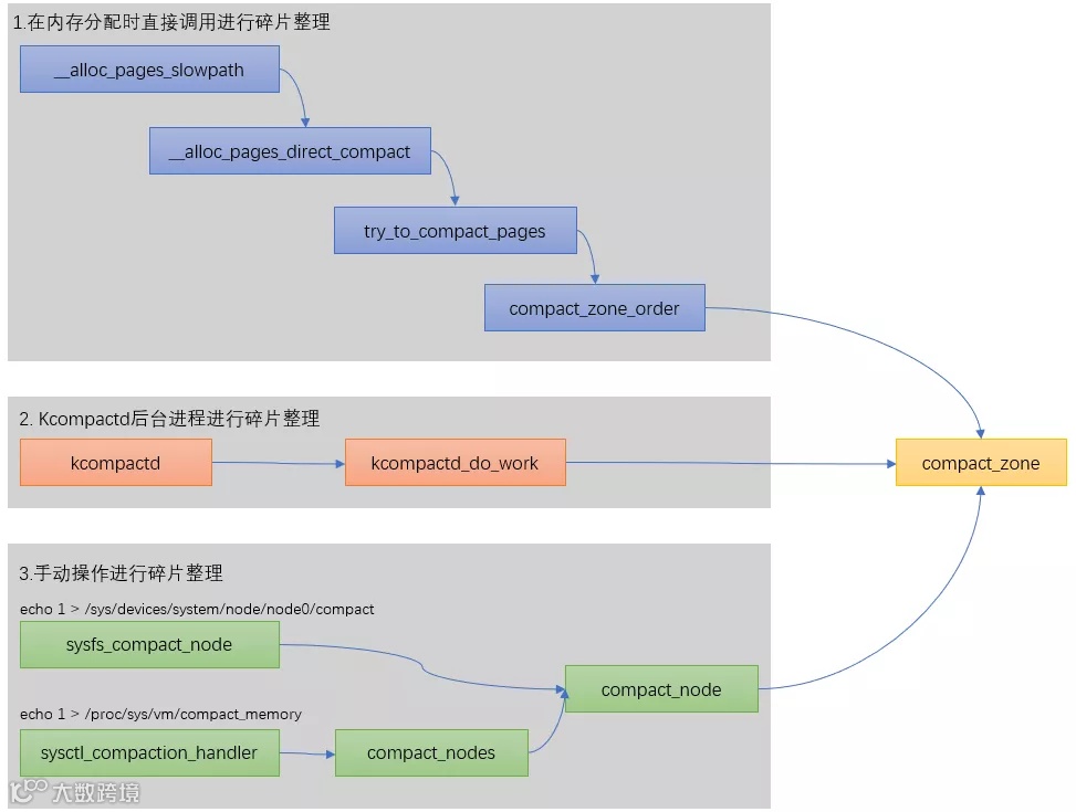 在页面分配时,有两种路径可以选择,如果在快速路径中分配成功了,则直接返回分配的页面;快速路径分配失败则选择慢速路径来进行分配。总结如下: