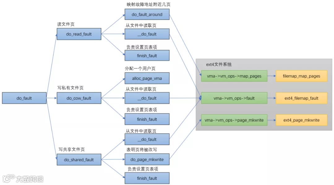 do_wp_page函数用于处理写时复制(copy on write),其流程比较简单,主要是分配新的物理页,拷贝原来页的内容到新页,然后修改页表项内容指向新页并修改为可写(vma具备可写属性)。
