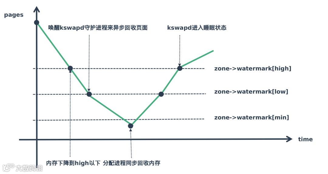 Linux内核使用水位标记(watermark)的概念来描述这个压力情况。