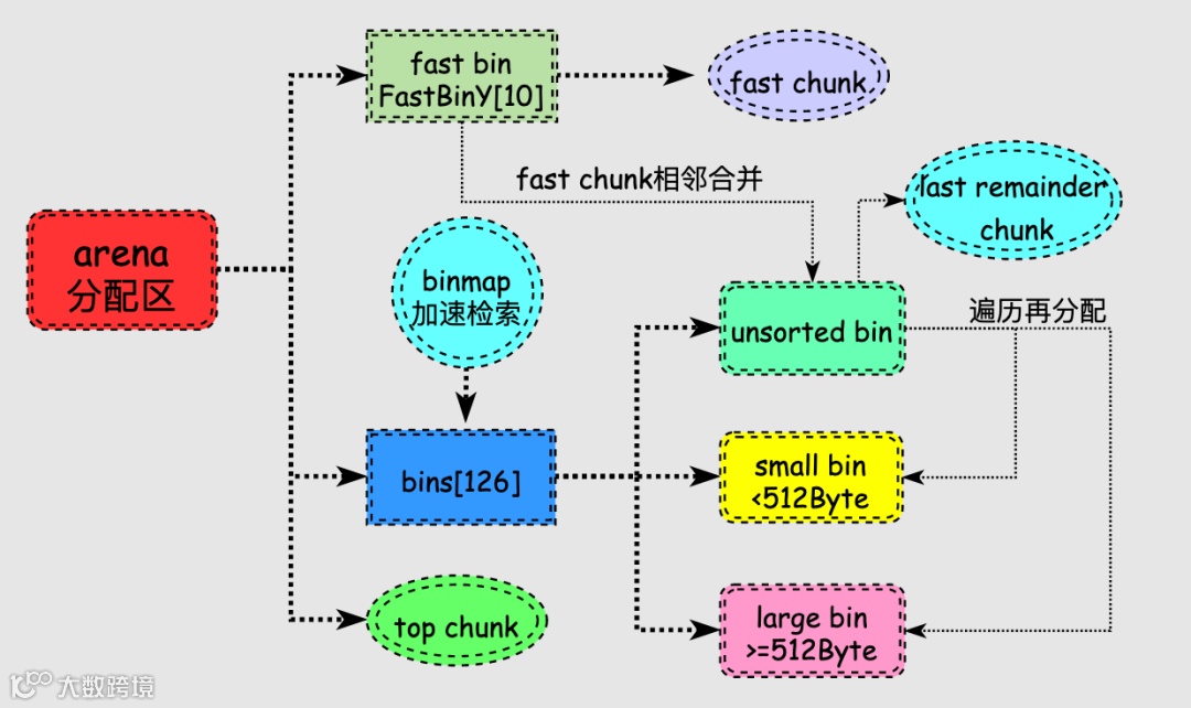 这种特殊chunk主要用于分配内存非常小的情况下,当fast bin和small bin都无法满足时,还会再次从last remainder chunk进行分配,这样就很好地利用了程序局部性原理。