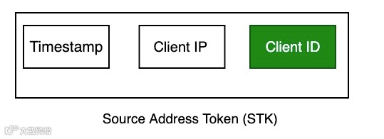 类似于 Session Ticket 原理,Server 会将客户端的地址和当前的 Timestamp 通过自己的 KEY 加密生成 STK。 -