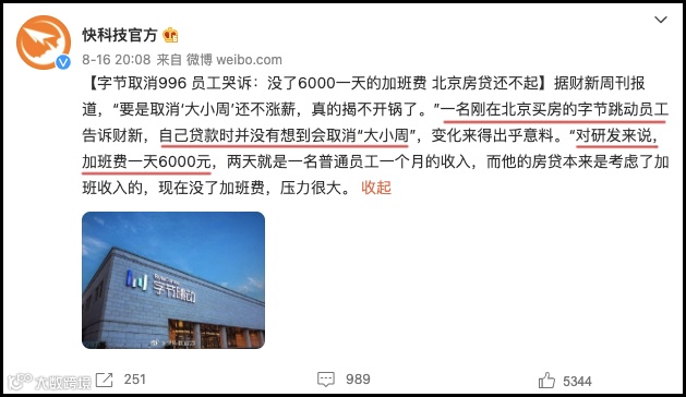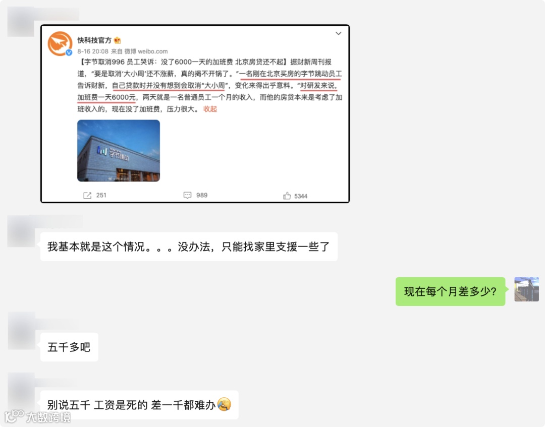 昨天和一位朋友聊天,他是字节的员工,和我吐槽自从公司取消大小周之后,他在经济上的周转就遇到了困难,不得不找家里人借钱帮忙。