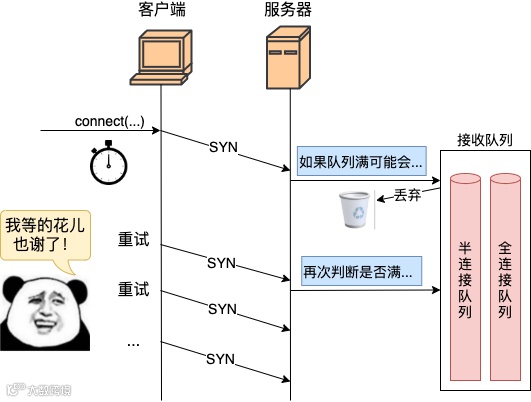 我们来看下半连接队列在何种情况下会导致丢包。