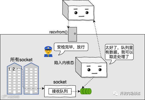 我们通过一个叫 recvfrom 的系统调用来读取我们的用户发送过来的数据。假如运气好的话,我们 recvfrom 的时候就可以把数据取走!