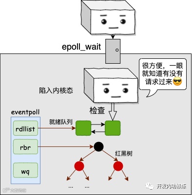 我是终于不用再不断的轮询了,每次我想要知道哪个 socket 上有请求的时候,直接进入内核态查看一下就绪队列就行了。