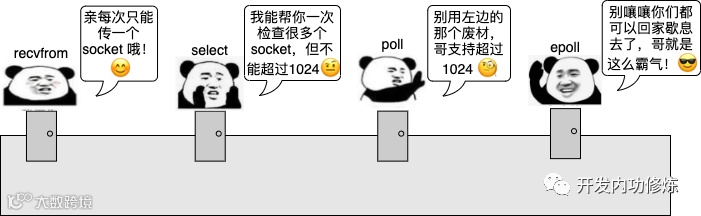 这下就好了,我就可以用循环遍历的方式把我所有的 socket 挨个到内核中去看一遍。
