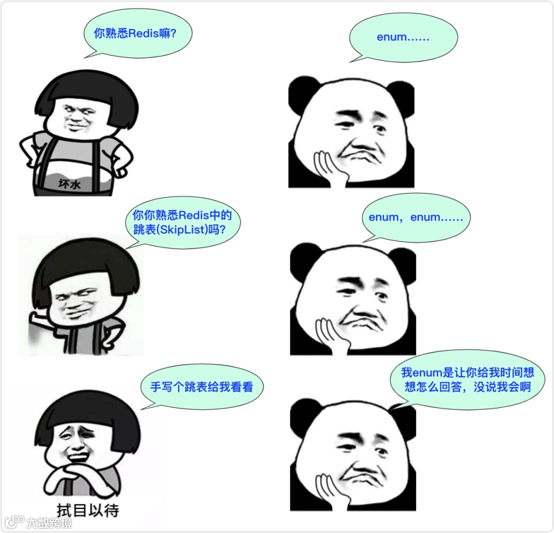 跳表是面试常问的一种数据结构,它在很多中间件和语言中得到应用,我们最最熟知的就有Redis跳表(zset)。并且在面试的很多场景可能会问到,偶尔还会让你手写试一试(跳表可能会让手写,红黑树是不可能的),这不,给大伙复原一个场景:
