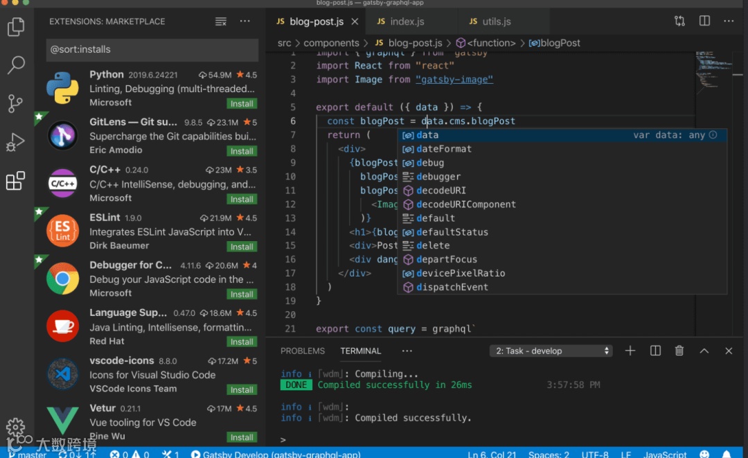 Visual Studio Code(简称VS Code)是一款由微软开发且跨平台的免费源代码编辑器。该软件支持语法高亮代码自动补、代码重构、查看定义功能,并且内置了命令行工具和Git版本控制系统。用户可以更改主题和键盘快捷方式实现个性化设置,也可以通过内置的商店安装扩展以拓展软件功能。(来源:维基百科)