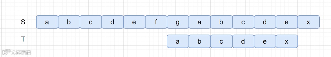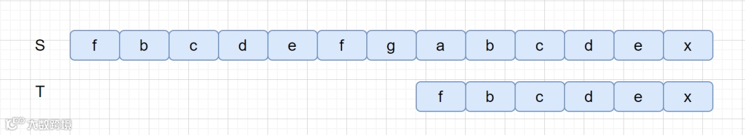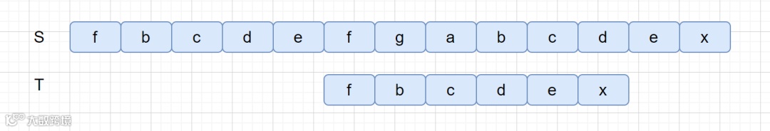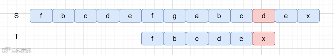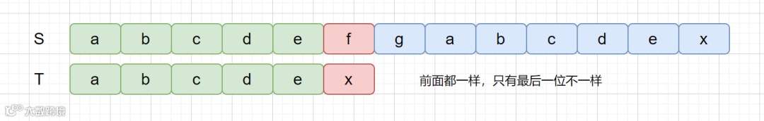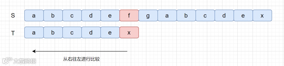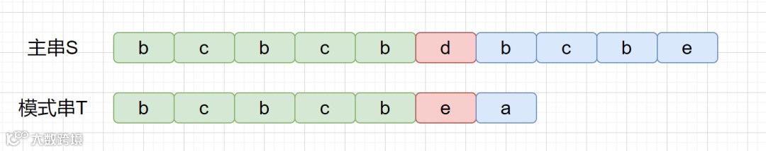 好后缀其实也很容易理解,我们之前说过 BM 算法是从右往左进行比较,下面我们来看下面这个例子。